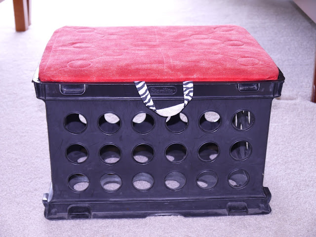 I decided it was probably time to look at my crate seats again since I had noticed one starting to tear at the corner this school year. Originally, I had covered these in fabric. Even at the time, I wasn't completely sold on putting plain fabric on them. Fabric tears over time with hard use. But also, it's GROSS after 3 years without being cleaned. You can't just tear it off and wash it and put it back on. These were beyond gross, and I had to get it out of my classroom.
